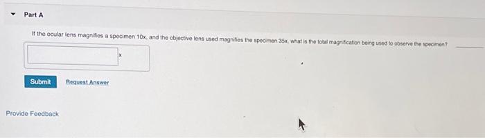 Solved Part A If The Ocular Lens Magnifies A Specimen 10x Chegg Com